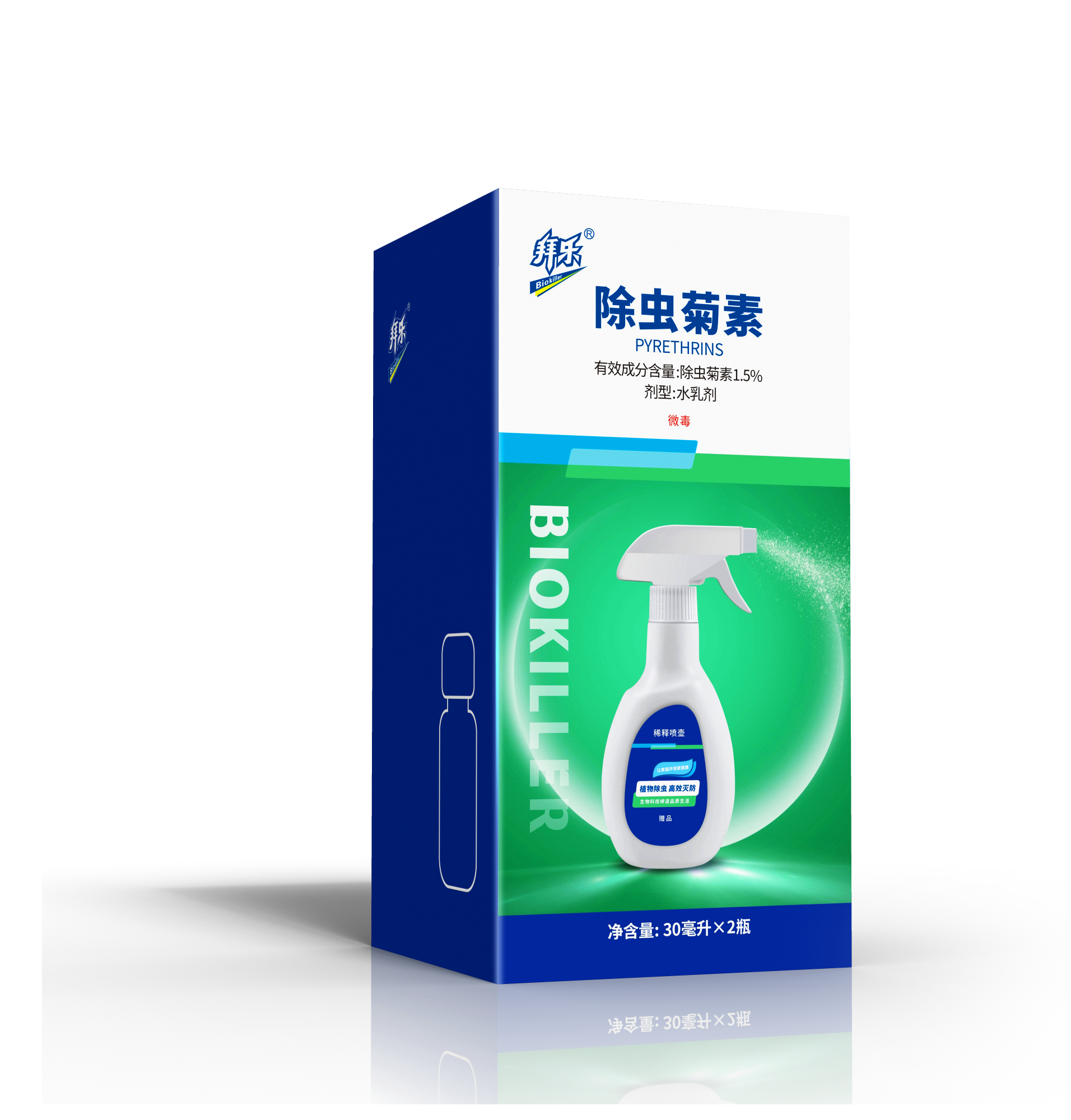 Природный пиретрин является активным компонентом с инсектицидным действием, извлеченным из Pyrethrum cineriifoliun Trebr. Он состоит из пиретрина I, пиретрина II, цинерина I, цинерина II, жасмина I и жасмина II. Природный пиретрин медленно разлагается в воде и CO2 при воздействии света, поэтому пестицид или санитарный инсектицид, приготовленный с его использованием, не имеет остатков и не оказывает побочных эффектов на людей и животных после использования. Он международно признан как самый безопасный и экологически чистый природный инсектицид.